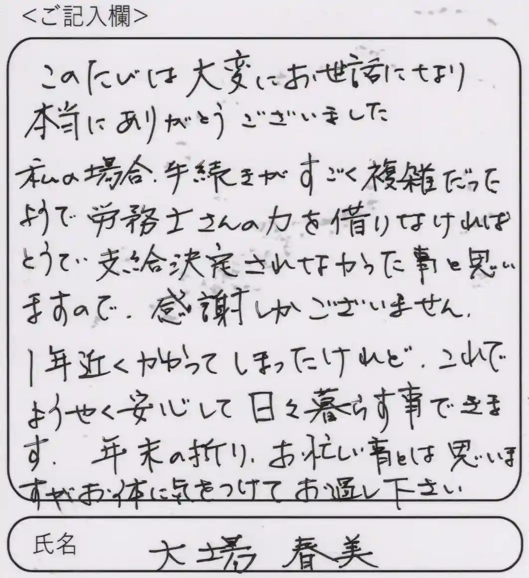 愛知県 H・Yさまのお母様 2022年9月決定